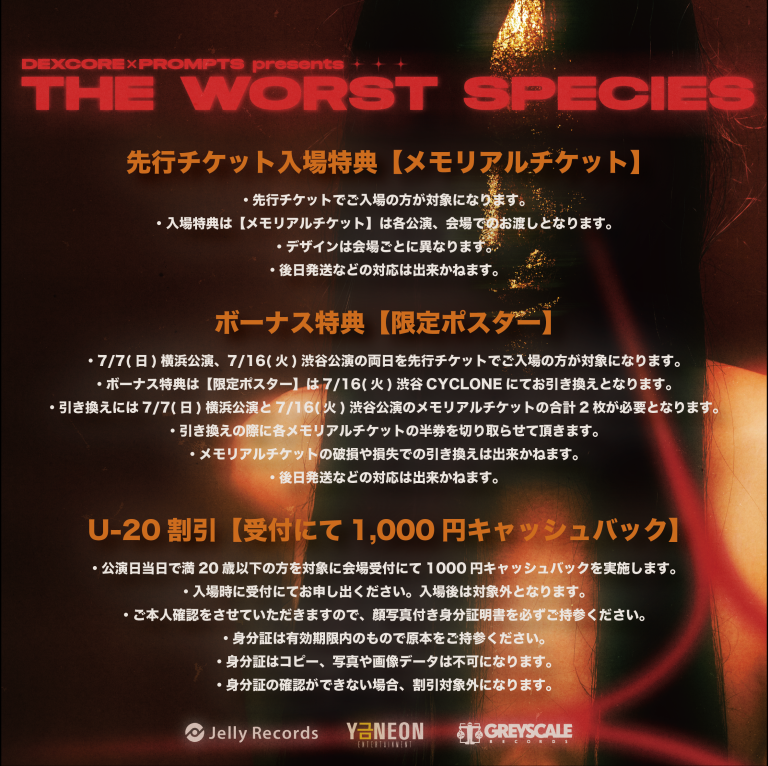 ・7/7(日)横浜公演、7/16(火)渋谷公演の両日を先行チケットでご入場の方が対象になります。