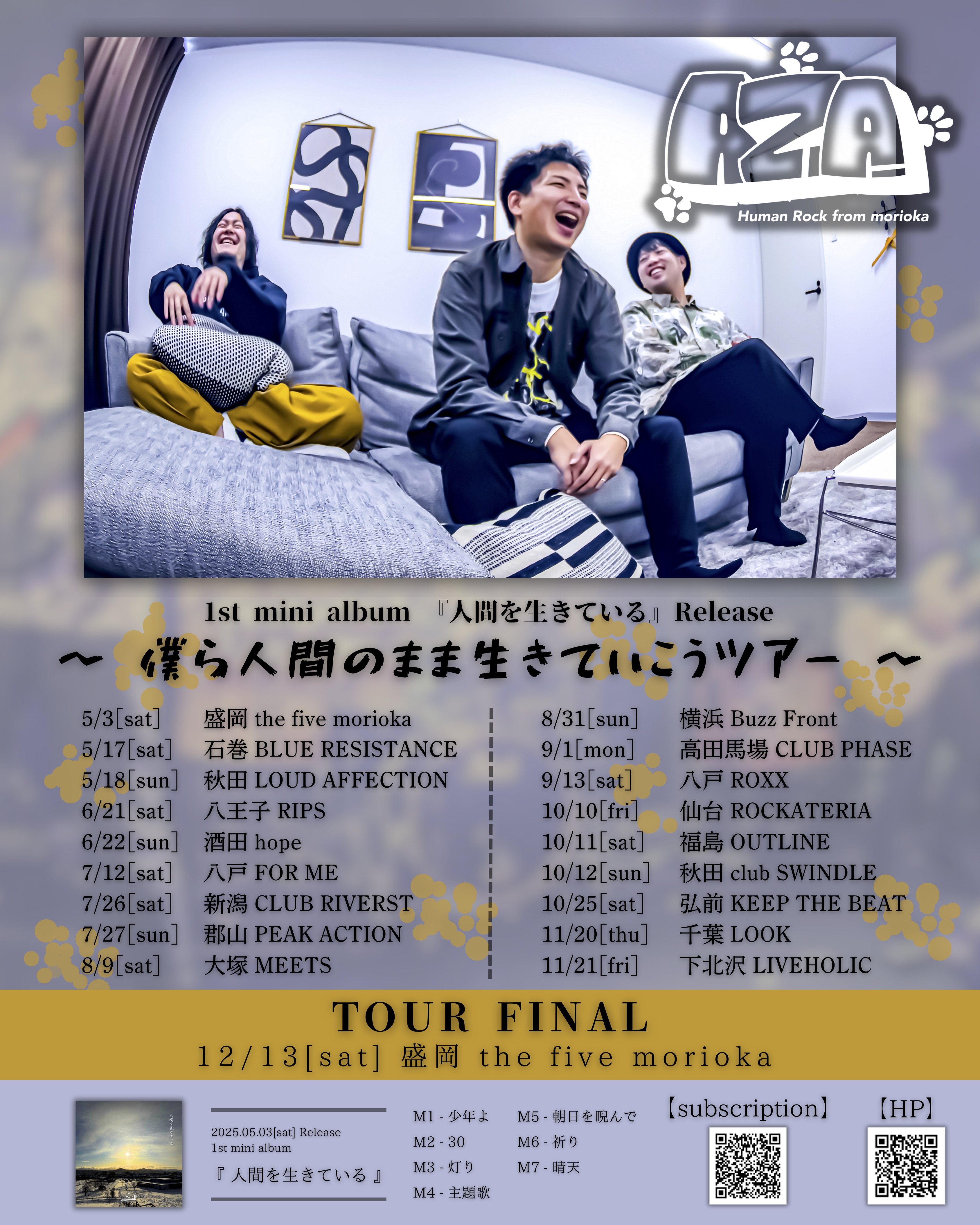 2025年5月1st mini album「人間を生きている」をリリースし全19ヶ所のリリースツアー敢行中!