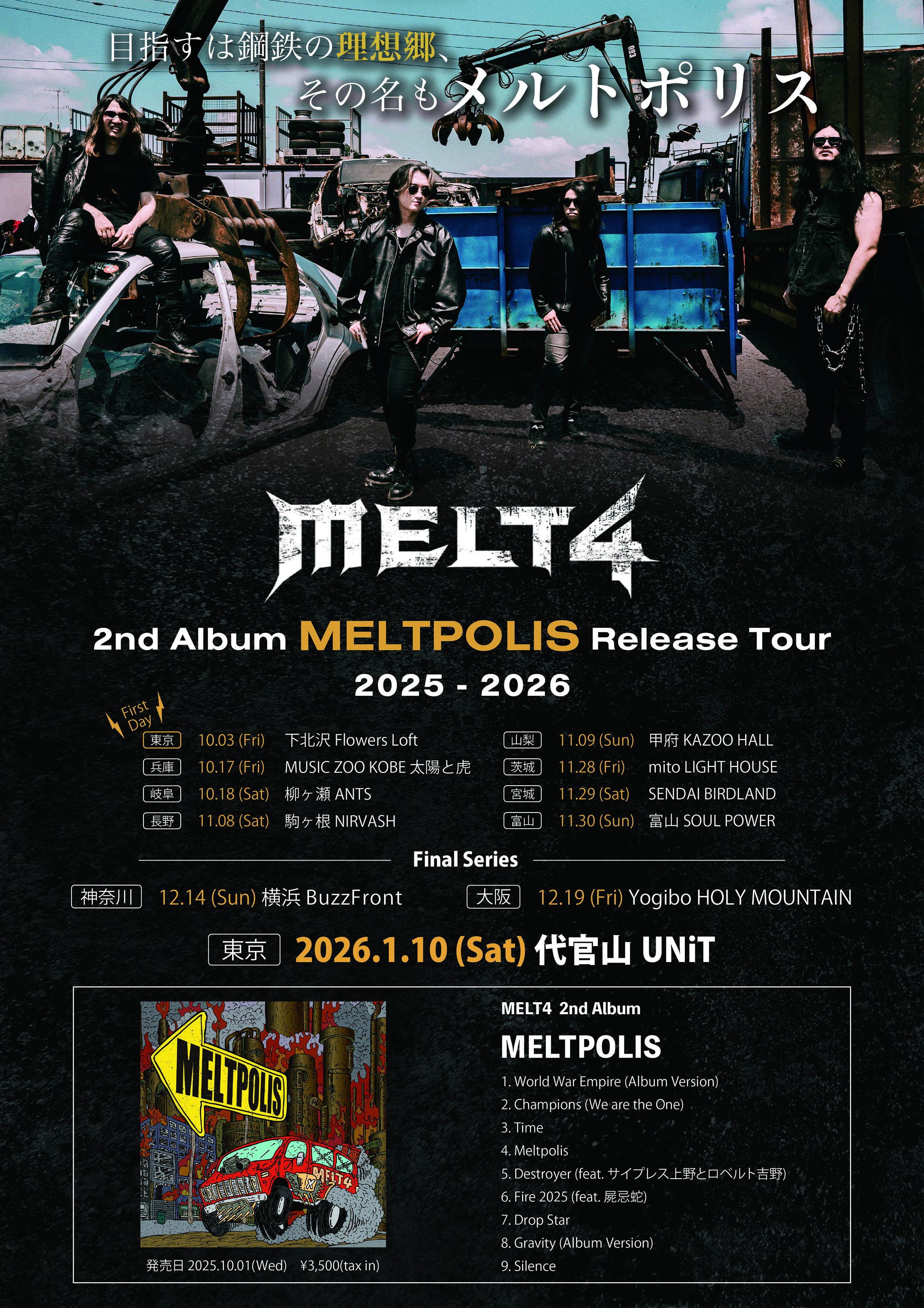 出演者 MELT4 THE冠 NUBO ADAM at OPEN 17:00 / START 17:30 ¥3,500+1D