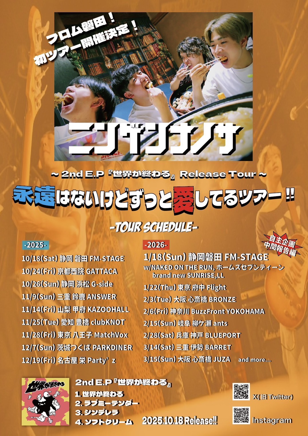 出演者 ニンゲンナノサ GREEN BARREL HARAMIYA Ask Your Mom 匠-takumi OPEN 18:30 / START 19:00 前売 ¥2,000+1Drink(¥600) / 当日 ¥2,500+1Drink(¥600) ポップス / ロック / パンク / オルタナティブ